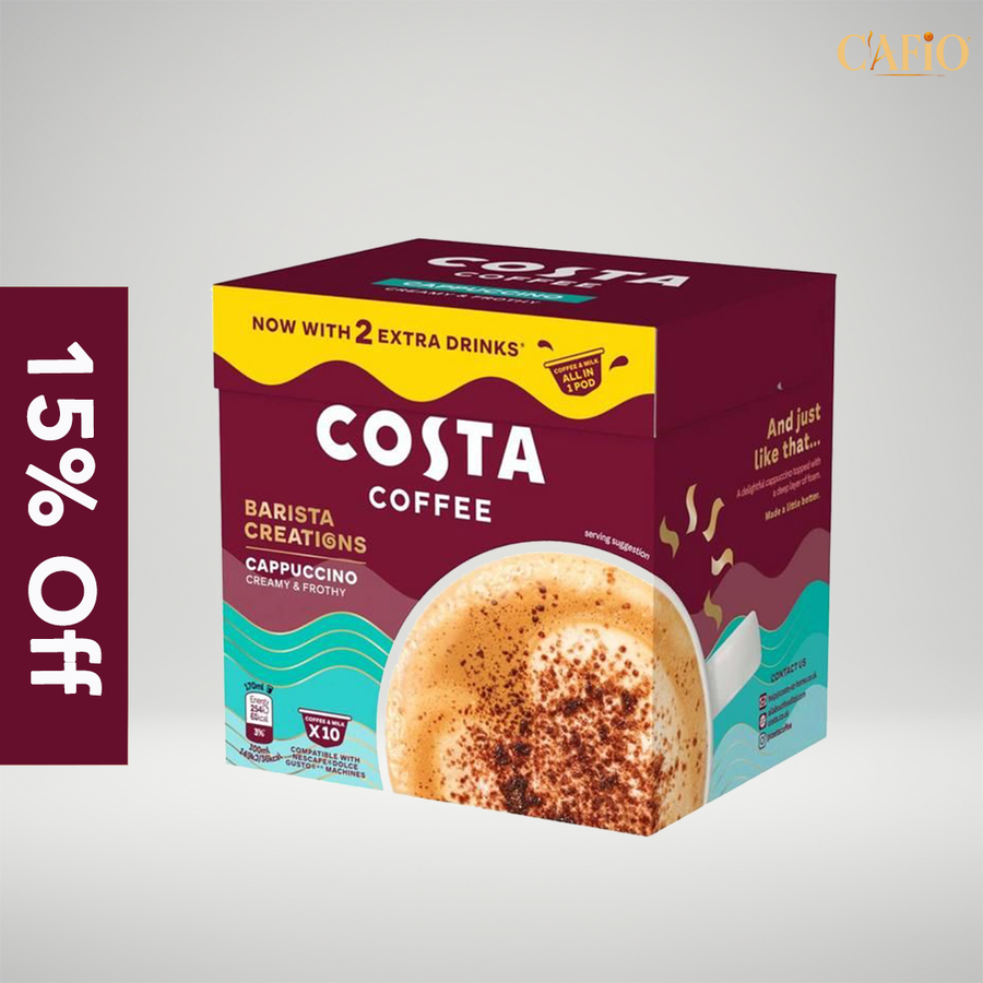 Costa Coffee Barista Creations Cappuccino Pods deliver a true café-style cappuccino experience with creamy texture and smooth foam. A perfectly balanced blend of coffee and milk in one pod makes preparation quick and effortless.