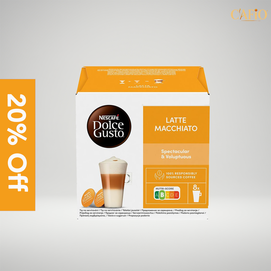 Nescafé Dolce Gusto Latte Macchiato Capsules deliver a beautifully layered coffee experience with smooth milk, rich espresso, and a velvety foam on top. Enjoy café-style indulgence with perfectly balanced coffee and milk notes in every cup.