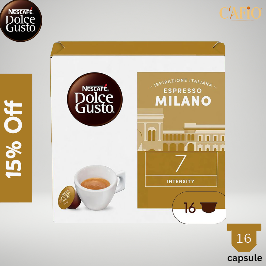 Nescafé Dolce Gusto Espresso Milano Capsules deliver an authentic Italian espresso inspired by Milan’s coffee culture. A refined, aromatic espresso with a smooth crema and a well-balanced intensity—perfect for those who appreciate classic Italian elegance in every cup.
