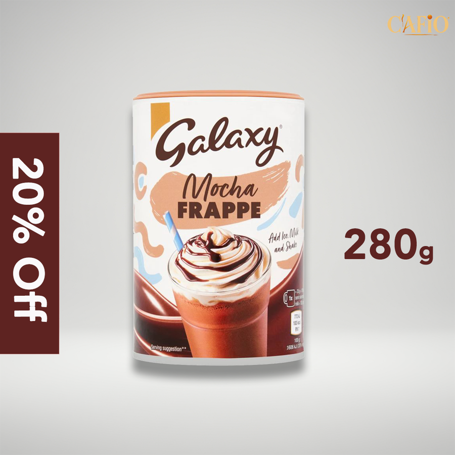 Galaxy Mocha Frappe 280g blends the smooth richness of Galaxy chocolate with a hint of coffee to create a refreshing iced drink with a creamy texture. A perfect combination for mocha lovers who enjoy the balance between chocolate sweetness and coffee flavor in one indulgent drink.