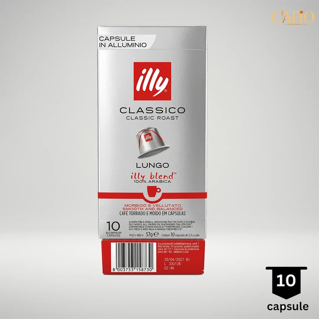 Illy Classico Lungo Capsules deliver a smooth and well-balanced long coffee experience, crafted from 100% premium Arabica beans. Designed specifically for a longer cup, this blend offers a delicate aroma, mild acidity, and a silky finish.