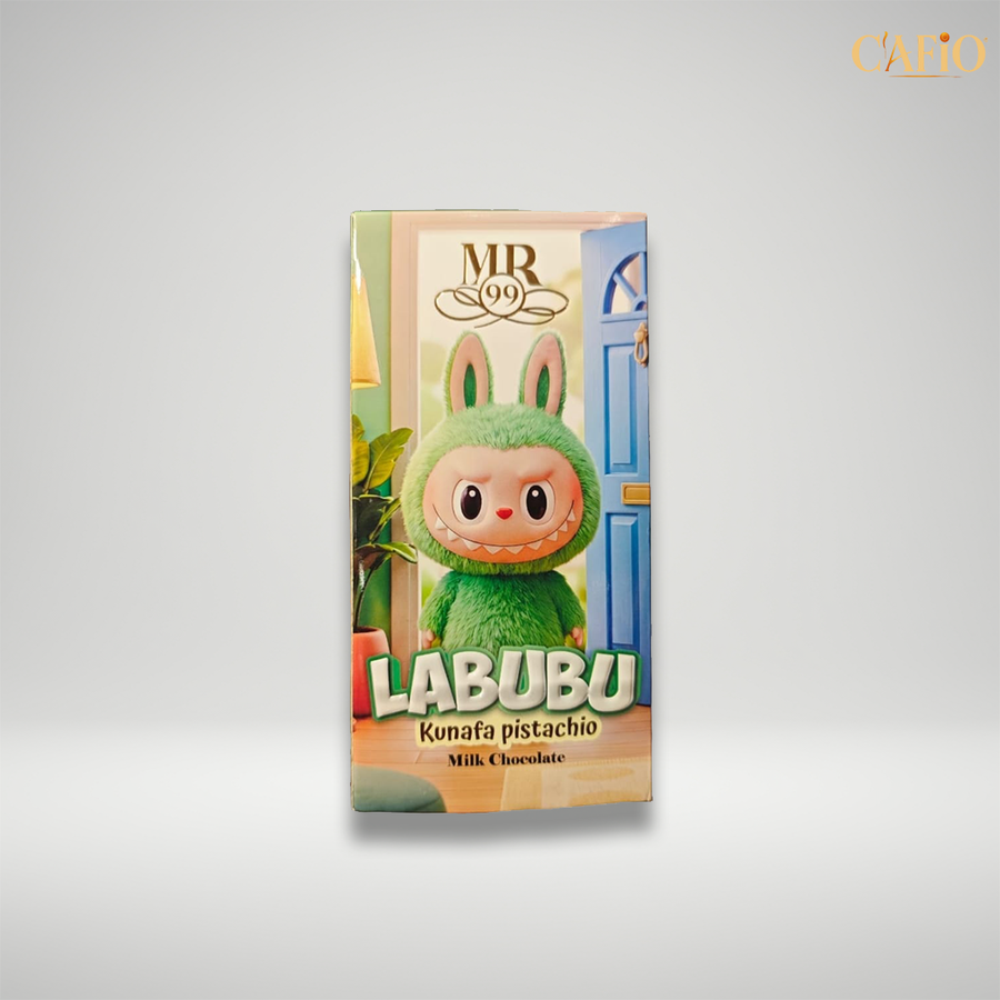 شوكولاتة Labubu Pistachio بتقدّم تجربة شوكولاتة راقية بطعم الفستق الغني والواضح، بتمتزج فيها نعومة الشوكولاتة مع نكهة فستق متوازنة بتبان من أول قضمة وتكمّل بطعم ثابت ولطيف.